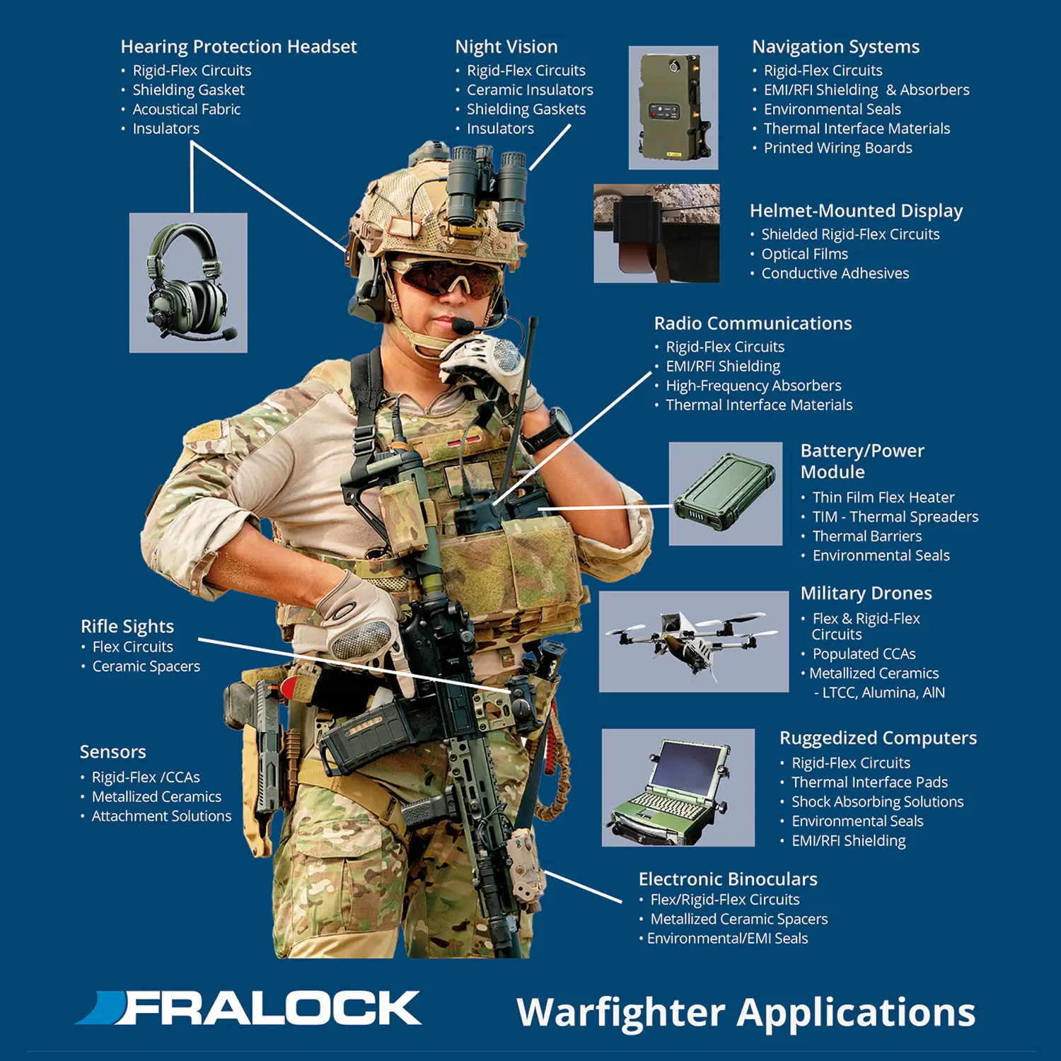 Fralock supports U.S. warfighters by delivering reliable, custom component and sub-assembly solutions designed to meet the demanding requirements of today’s warfighter applications.